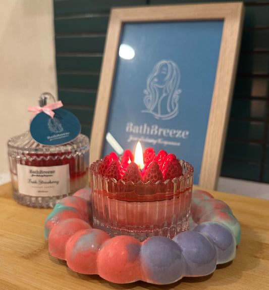 BathBreeze Fresh Strawberry Candle - Lilin Aromaterapi / Scented Candle - Pink